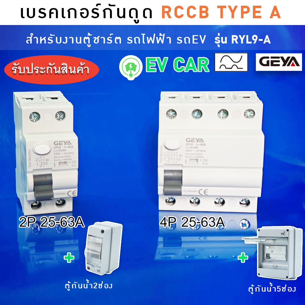 เบรคเกอร์กันดูด RCCB TYPE B สำหรับงานตู้ชาร์ตรถไฟฟ้า (EV Car) ยี่ห้อ GEYA รุ่น RYL9-A -เหมาะสำหรับ EV Charger -ตัดกระแสรั่วที่ 30mA -ตัวกันดูด RCD ติดตั้งโดย ใช้ยึดกับรางรีเรย์ หรือรางปีกนก ภายในตู้ไฟ -มีให้เลือกใช้งาน 5 ขนาด ตามความเหมาะสม 1. 2P25A 2. 2P40A 3. 2P63A 4. 4P25A 5. 4P40A 6. 4P63A -มาตรฐาน IEC62423 ,IEC61008-1, GB22794,GB16916.1 RCCB Type A : - เหมาะสำหรับใช้ทั้วไปทั้วในที่พักอาศัย อาคารพาณิชย์ และอุตสาหกรรม โดยเฉพาะอย่างยิ่งในบริเวณที่มีความเสี่ยงต่อกระแสไฟฟ้ารั่วสูง. นอกจากนี้ยังใช้กับเครื่องชาร์จรถยนต์ไฟฟ้า (EV Charger)รุ่นมีการติดตั้งอุปกรณ์ตรวจจับ กระแสไฟรั่วแบบกระแสตรง DC (RDC-DD) ขนาด 6mA มาให้ในตัวแล้ว*** - สามารถตรวจจับกระแสไฟฟ้ารั่วที่เป็นกระแสสลับ (AC) และกระแสตรงแบบพัลส์ (pulsating DC) |